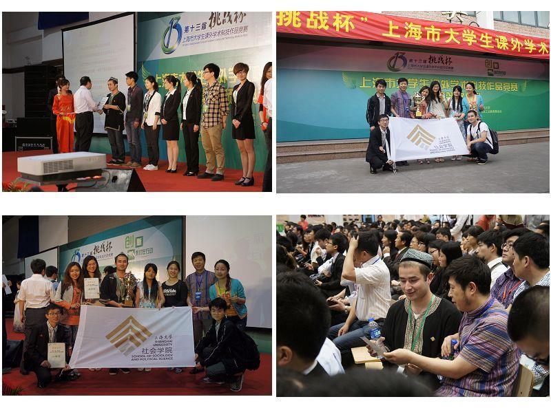 6月2日,第十三届挑战杯上海市大学生课外学术科技作品竞赛终审决赛和颁奖典礼在上海师范大学隆重举行,我校以高校团体总分第二的成绩力捧优胜杯。社会学院共有三件作品入围上海市级决赛,在决赛中分别获得了特等奖、一等奖、二等奖的喜人成绩!社会学院副院长耿敬、院团委书记韦淑珍带队参加比赛。