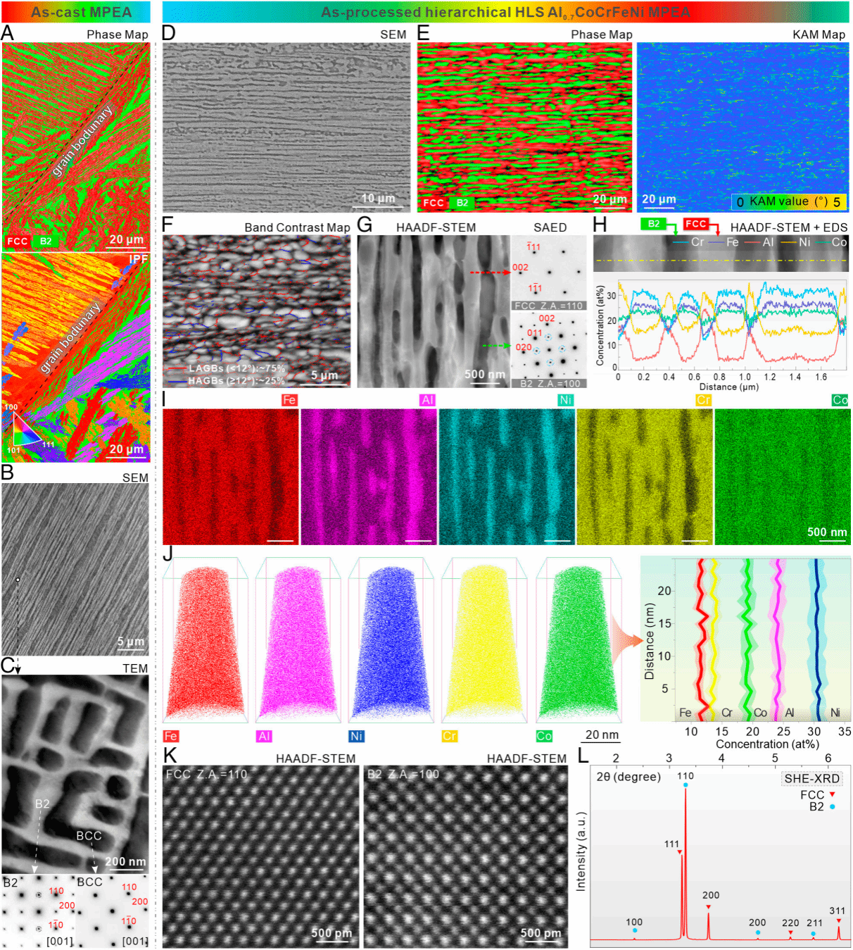 在金属材料领域,严重的强度-塑性矛盾一直是制约材料性能提升的关键因素。尤其是在多主元高熵合金中,脆性金属间化合物的存在常常引发材料过早失效,造成材料塑性显著下降。多级异质结构作为一种新型微观结构设计策略,为实现强塑性的协同提升提供了新的可能。然而,传统制备异质结构的方法不仅成本高昂,而且耗时冗长,为异构材料的实际应用带来了巨大挑战。