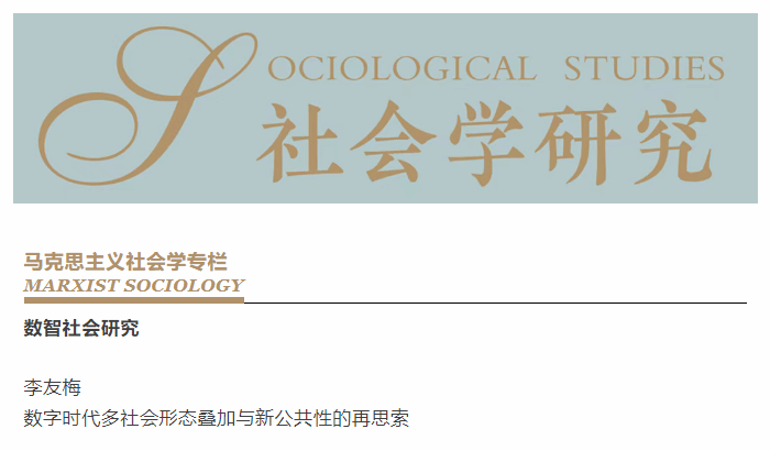 国产亚洲精品美女久久久社会学院李友梅教授在《社会学研究》(2025年第5期)马克思主义社会学专栏发表《数字时代多社会形态叠加与新公共性的再思索》一文。李友梅教授长期从事社会协调机制、社会建设与基层社会组织、城市社会治理现代化等研究。该文是作者主持的国家社科基金重大项目“当代中国社会建设实践及其理论建构研究”的阶段性成果之一。