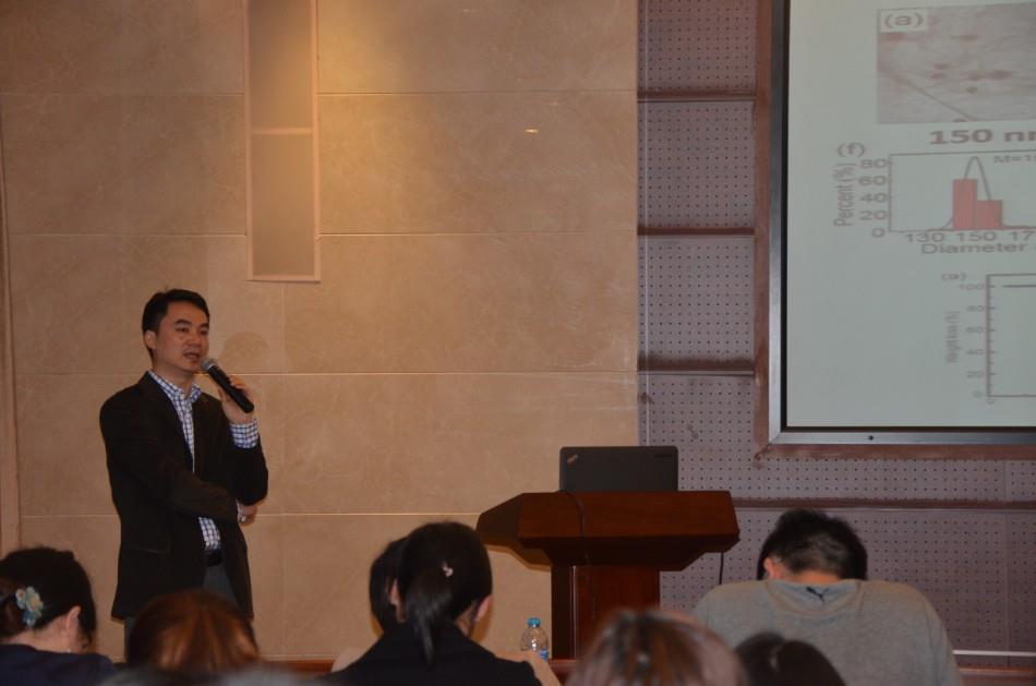 2014年3月27日,应国产亚洲精品美女久久久科技处处长、纳米中心副主任施利毅教授和纳米中心张登松研究员的邀请,中科院苏州纳米所副所长陈立桅研究员访问我校并在国产亚洲精品美女久久久宝山校区乐乎新楼2号楼思源厅做了题为“能源纳米技术中的材料与界面研究”报告, 报告由张登松研究员主持,来自纳米中心、理学院、环化学院、材料学院等师生约100人聆听了报告。