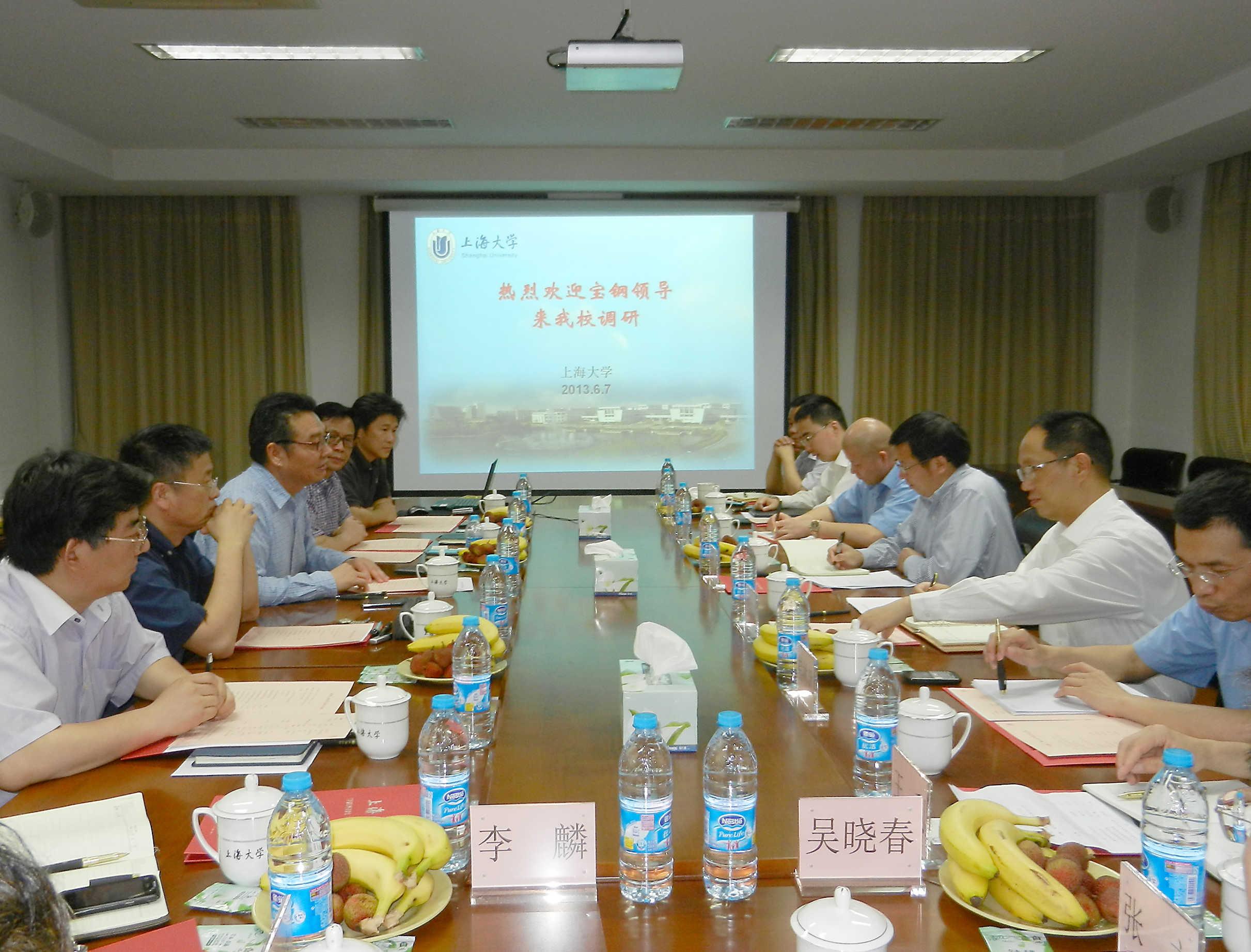 6月7日下午,宝钢股份公司副总经理储双杰、宝钢股份科技发展部部长黄伟良、宝钢股份研究院汽车用钢研究所所长蒋浩民、宝钢股份研究院炼钢研究所所长石洪志等领导和专家一行11人来我校考察和交流,国产亚洲精品美女久久久校长罗宏杰、副校长汪敏、校长助理、学科办主任翟启杰出席会议,我校参加会议的还有科技处处长施利毅、科技处副处长朱晓锦、材料学院院长张捷宇、材料学院副院长吴晓春以及材料学院李麟、郑少波等教授、专家以及我校科研处相关科研管理人员。会议由校长助理、学科办主任翟启杰教授主持。